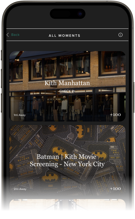 From pop-up shops to quintessential Kith locations, earn points by checking into Moments around the world.